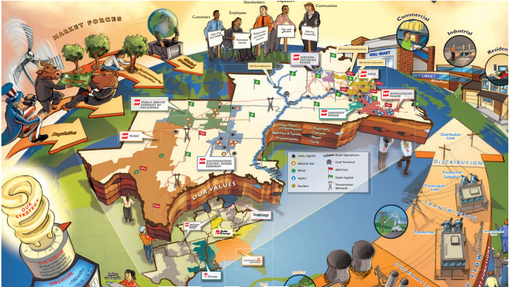 AEP ranks among the nation’s largest generators of electricity, owning nearly 38,000 megawatts of generating capacity in the U.S. AEP also owns the nation’s largest electricity transmission system, a nearly 39,000-mile network. AEP’s 22,000 employees are spread across 11 states, seven operating companies, and multiple locations. This vast, diverse network of operations created the need for an engaging and consistent “big picture” view for its employees – especially when bringing new employees onboard.