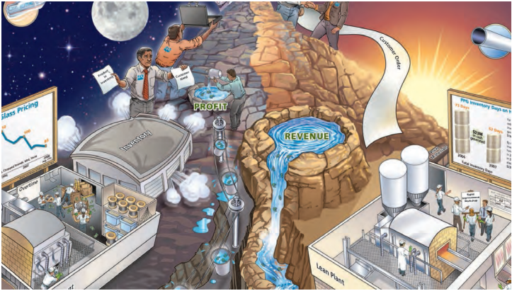 As many companies do, PPG leadership keeps score with metrics such as earnings per share, return on capital, and free cash flow. But often, when these words are “translated” for people, they hear something different. They hear things like “reduce inventory,” “pay suppliers slower,” or “manage TAKT time.” Leaders often inundate employees with tactics, but fail to provide them with the big picture of the business from the leaders’ point of view.